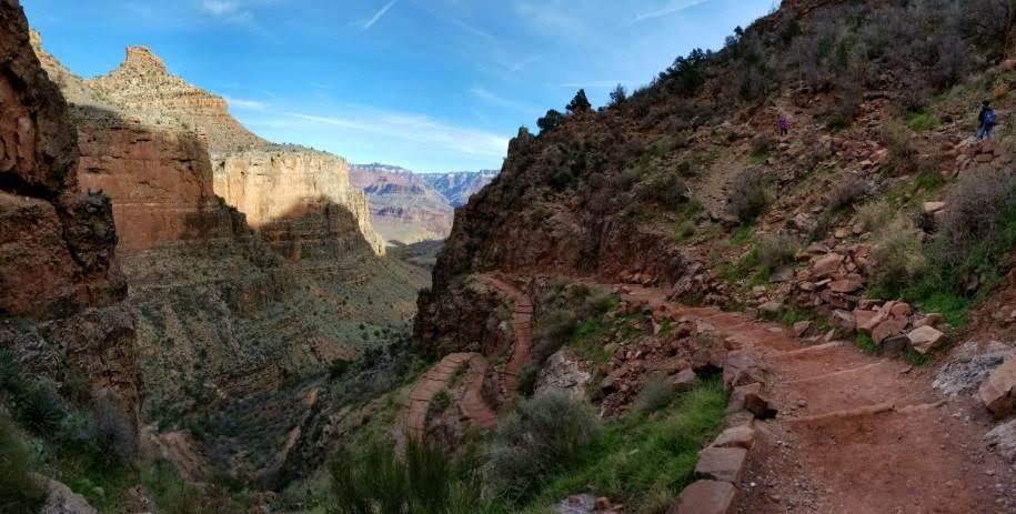 As you would expect the trail is all downhill at the beginning and that means all uphill at the end. The trail was extremely well taken care of with spots to rest at 1.5 miles, 3 miles and 4.5 miles. These rest stops have toilets at each spot. The 4.5-mile spot had a campground and day use area as well.
